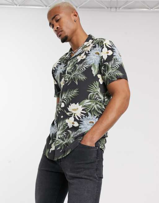 Chemise Hawaienne Noire : Boutons en métal de style pièce.